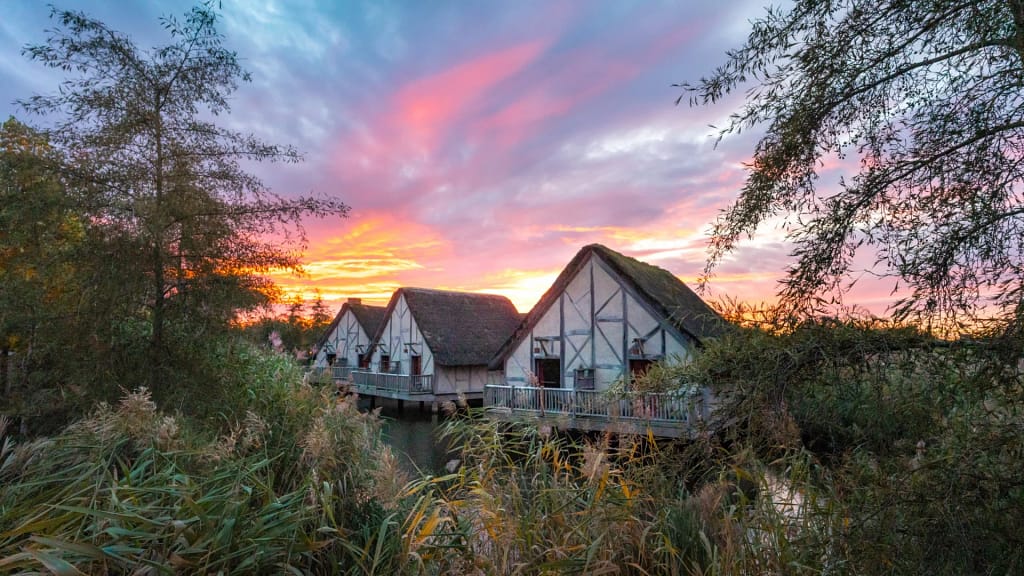 De authentieke sfeer van de houten interieurs en rieten daken, gecombineerd met het moderne restaurant ‘Le Banquet de Mérovée’ en de gratis parking ‘La Cité Nocturne’, maken je verblijf in Puy du Fou onvergetelijk. Ontspan en droom weg op het ritme van het water!