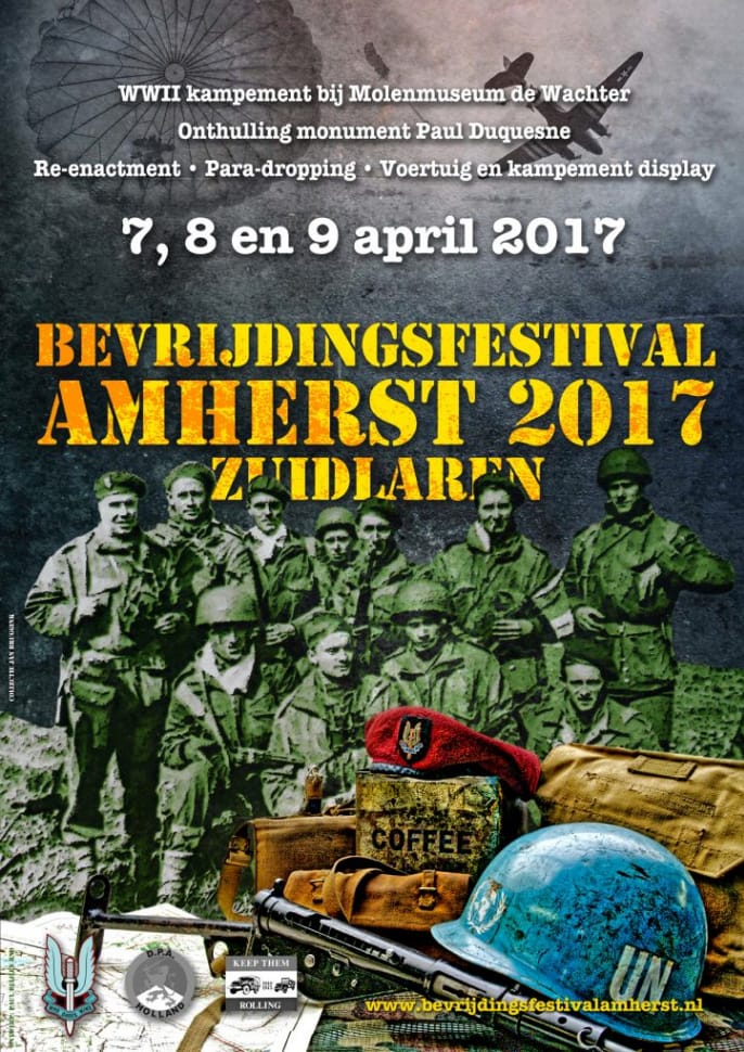 In het weekend van 7 tot en met 9 april 2017 wordt in Zuidlaren de vrijheid en het vechten voor die vrijheid gevierd. Stichting Bevrijdingsfestival Amherst Zuidlaren organiseert in samenwerking met diverse verenigingen en ministerie van Defensie dit evenement.