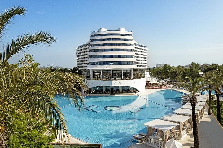 Dit hotel ligt iets hoger op het licht stijgende terrein en wordt slechts door de kustweg van het prive hotelstrand gescheiden (ca. 50 m). Het centrum van Alanya bereikt u na ongeveer 14 km met de openbare dolmus bussen en met de minibusservice van het hotel. De luchthaven Antalya ligt op ongeveer 145 km van het hotel. Het in 2003 gebouwde complex uit de hogere klasse beschikt over in totaal 161 tweepersoonskamers, verdeeld over meerdere 1 tot 2 verdiepingen tellende woonhuizen in Spaanse stijl. Een ontvangsthal biedt u een 24 uur per dag geopende receptie en een hotelkluis. Verder beschikt het over een minimarkt, winkels, kapper, bar, openluchtdiscotheek, televisiekamer, een airconditioned restaurant (kinderstoelen aanwezig), een conferentieruimte en een openbare internettoegang. Tevens beschikken de gasten over room- en wasservice, een parkeerplaats, garage en een speelplaats en een miniclub (4 tot 12 jaar) voor de kleine gasten. De comfortabel ingerichte, van airconditioning voorziene kamers hebben een badkamer met toilet, douche haardroger, telefoon, satelliet-/kabeltelevisie, internetaansluiting, minibar, koelkast, centrale verwarming, een balkon (voor een deel met uitzicht op zee) en een huurkluis. In het met zorg aangelegde buitengedeelte vindt u een zwembad met kinderbad, ligstoelen (kussens tegen betaling) en parasols. Verder biedt het hotel een fitnessstudio en tegen betaling een massageservice. Het hotel biedt sportmogelijkheden, zoals tafeltennis, aerobic, basketbal, beachvolleybal en tegen betaling tennis en biljart. Aan het strand kunt u kiezen uit talrijke watersporten, aangeboden door particuliere ondernemers. Ook het animatieprogramma zorgt voor amusement. U kunt uw ontbijt, lunch en diner zelf aan een buffet samenstellen. Het diner kan a la carte worden gekozen. Het is mogelijk om all-inclusive te boeken.