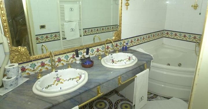 Dit hotel is gevestigd in een voormalige adellijke residentie. Deze 700 jaar oude villa is gelegen in een pittoreske hoek van Campania, aan de voet van de groene Lattari bergen en op de vlakte van Pompeii, bij S. Antonio Abate. Het is gelegen in de provincie Napels met het klimaat van Castellammare di Stabia en vlakbij het fascinerende, archeologische complex Pompeii. Het hotel ligt in een weelderige, groene tuin van een park van 50.000 m2, met royale parkeergelegenheid voor auto’s en bussen, een heliport, een zwembad met een hydromassage bad en een voetbalveld. Het hotel heeft 70 mooie kamers in Venetiaanse stijl die allemaal zijn ingericht met moderne voorzieningen. De grote en luxueuze kamers zijn voorzien van schitterende fresco’s en zijn ideaal voor vergaderingen, conferenties, recepties en vooral ook voor bruiloften. Het cafe, de bar en het restaurant bieden eten, snacks en drinken. Verfijnde, klassieke cuisine, geserveerd door gekwalificeerd personeel zorgt ervoor dat zelf de meest veeleisende gasten kunnen genieten van hun verblijf. Tot de verdere faciliteiten van dit van airconditioning voorziene hotel behoren een ontvangsthal met 24 uur per dag geopende receptie en uitcheckservice, een hotelkluis en een lift. Internettoegang, roomservice en parkeergelegenheid zijn ook beschikbaar. De kamers van het hotel zijn verdeeld over 6 verdiepingen. Alle suites zijn ruim en elegant. Ze zijn beschikbaar in verschillende kamertypen, als tweepersoonskamers of als kamers met 3 of meer bedden. Tot de voorzieningen op de kamers behoren een telefoon,internettoegang,individueel regelbare airconditioning, satelliet-/kabeltelevisie, een minibar, een kluisje en de mogelijkheid om koffie en thee te zetten. De kamers hebben een eigen badkamer met een douche en een haardroger. De kamers beschikken ook over een eigen terras. Het hotel heeft een buitenbad met een (snack)bar aan het zwembad en de gasten kunnen ook gebruik maken van de fitnessruimte.