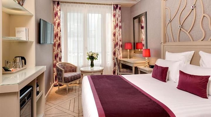 Elegant charmant hotel. Het hotel biedt alle comfort wat u van een 4-sterrenhotel mag verwachten. Uitstekende ligging dichtbij de Champs Elysées. Klassieke kamers met vele faciliteiten.