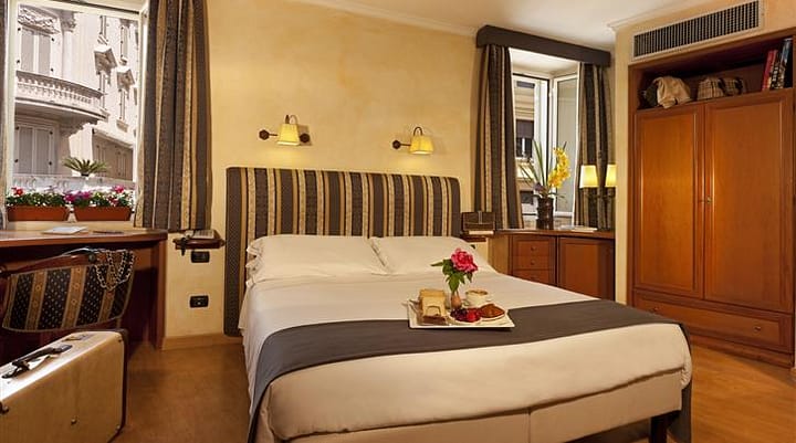 Kleinschalig, gemoedelijk 3-sterren hotel met een uitstekende ligging, precies tussen de Trevifontein en de Spaanse trappen. Zeer vriendelijke service.