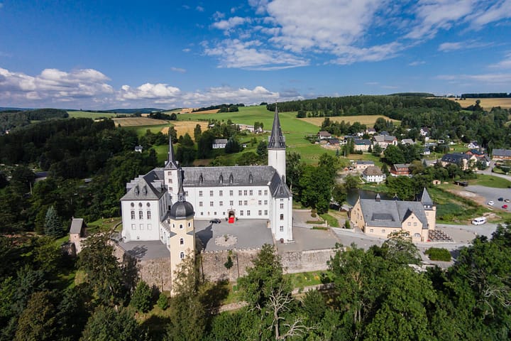 Het 4-sterren hotelSchlosshotel Purschenstein ligt in Neuhausen