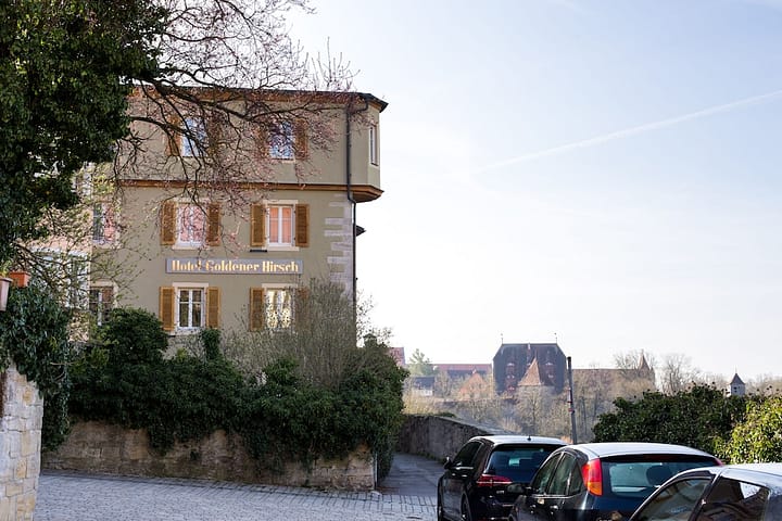 Het 3-sterren hotelHotel Goldener Hirsch ligt in Rothenburg ob der Tauber