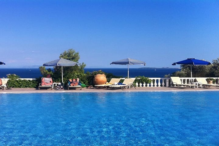 Dit vakantiehotel in mediterrane stijl wordt gerund door een familie en ligt te midden van tuinen die naar zee leiden. Het is 1,5 km naar het strand Barbati en 3 km van het resort Ipsos. De gasten vinden restaurants, bars, uitgaansgelegenheden en winkels in het nabijgelegen Barbati. Het hotel beschikt over 4 verschillende gebouwen met in totaal 101 gastenkamers. De gasten worden verwelkomd in de ontvangsthal van het hotel met een 24 uur per dag geopende receptie en uitcheckservice en een wisselkantoor. Het hotel beschikt ook over een televisielounge, een kinderspeelplaats, 2 bars, een restaurant, draadloze internettoegang en een parkeerplaats. De gasten kunnen op het grote terras van het hotel genieten van de zon en van het schitterende uitzicht over de kristalheldere Ionische Zee. Om de omgeving te verkennen kunnen de gasten fietsen huren bij het hotel. De comfortabele kamers hebben een eigen douche en een wc. Ze beschikken ook over een telefoon, plafondventilatoren, een kluisje, satelliettelevisie, een koelkastje, individueel regelbare airconditioning (tegen betaling) en een balkon met uitzicht op zee. Extra bedden en kinderbedden zijn ook beschikbaar. Het hotel beschikt over een buitenbad met zwemgedeelte voor kinderen, een (snack)bar aan het zwembad en ligstoelen en parasols. De gasten kunnen kanovaren, tafeltennis spelen, basketballen of paardrijden. Tegen betaling is het ook mogelijk te windsurfen, waterskien, duiken, motorboot varen, bananaboot varen, waterfietsen, pool/snooker spelen en fietsen. Op het nabijgelegen kiezelstrand vinden de gasten eigen steigers en toegang op zee. Hier zijn tegen betaling ook ligstoelen en parasols beschikbaar. Het hotel biedt verschillende cateringmogelijkheden. Een keer per week worden een Griekse avond en een barbecue geboden.