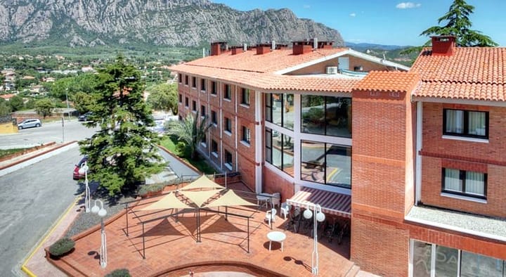 Dit hotel bevindt zich in de plaats Collbato, direct voor het natuurreservaat Montserrat en op slechts 40 km van Barcelona en de El Prat de Llobregat luchthaven. Het busstation en Covas de Collbato bevinden zich in de directe nabijheid van het hotel. Door zijn vredige en rustige ligging is het hotel een fantastische plek om te genieten van een paar rustige dagen ertussenuit omgeven door schitterende natuur. Tot de faciliteiten van het hotel behoren een bar, parkeergelegenheid met 100 plaatsen, een leeszaal en een bibliotheek. Het heeft 2 verdiepingen met in totaal 113 kamers. Verder zijn een ontvangsthal met 24 uur per dag geopende in- en uitcheckservice, een hotelkluis, een garderobe, een lift, een cafe, een televisielounge en een restaurant aanwezig. Conferentiefaciliteiten, (draadloze) internettoegang, wasservice en fietsverhuur worden ook geboden. Jonge gasten kunnen zich uitleven op de speelplaats. De comfortabele en praktische kamers hebben een eigen badkamer en zijn voorzien van een telefoon, een wekker, satelliettelevisie met afstandbediening, internettoegang voor laptops, een tweepersoonsbed, centrale verwarming en een terras Tot de faciliteiten van het hotel behoren een buitenzwembad naast de tuin met ligstoelen en parasols, een fitnessruimte, een pooltafel en tafeltennis. Paardrijden en fietsen is ook mogelijk. Het restaurant biedt een buffet met regionale Catalaanse specialiteiten en traditionele Spaanse gerechten.
