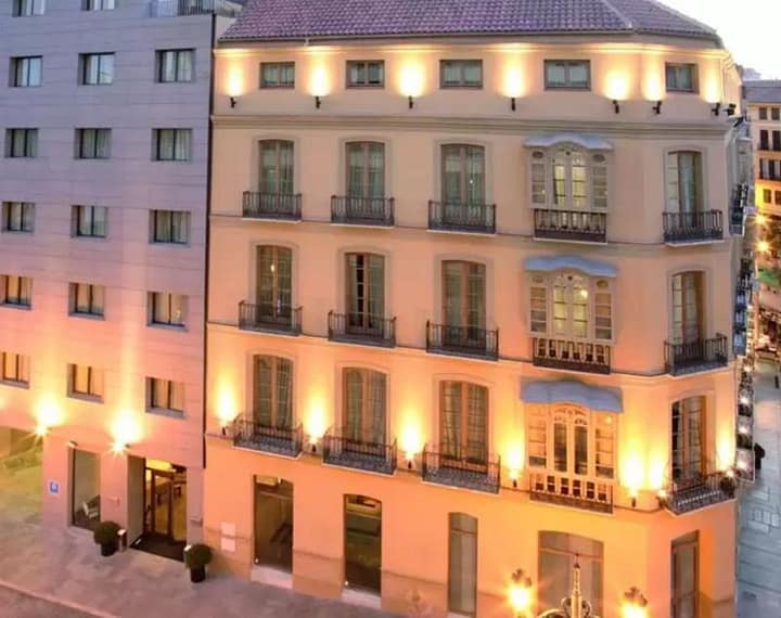 Het hotel ligt in het centrum van Malaga. Hier vindt u restaurants, bars en discotheken. Naar zee is het slechts ca. 100 m lopen. De luchthaven ligt op ongeveer 10 km afstand van het hotel. Dit nieuw gebouwde hotel bestaat uit 2 gerenoveerde gebouwen met oorspronkelijke gevels uit de 19e eeuw en een nieuwbout, die tezamen een uniek hotelcomplex vormen. Het heeft in totaal 103 kamers, waarvan 5 junior suites. In het hotel bevinden zich een bar en een restaurant met uitgang naar de straat. Het van airco voorziene hotel heeft 6 conferentieruimtes voor max. 200 personen en een business Center. Bovendien hebben de gasten de beschikking over een ontvangsthal, een receptie, die 24 uur per dag voor u klaar staat, hotelkluis, wisselkantoor, liften, cafe, room- en wasservice en een garage. Alle kamers hebben een badkamer met haardroger, internettoegang, telefoon, huurkluis, satelliet-/kabeltelevisie, stereo-installatie, minibar, twee bedden, tweepersoons- of kingsize bed, individueel gereguleerde verwarming en airconditioning. Een kleine golfbaan, een swimmingpool, een zonneterras met uitzicht op Malaga maken het amusementsaanbod compleet. Op het terras hebben de gasten de beschikking over ligstoelen en parasols. U kunt het ontbijt zelf aan een buffet samenstellen. De lunch en het diner kunnen a la carte of als menu worden gekozen. Het is mogelijk om Bed&Breakfast te boeken.