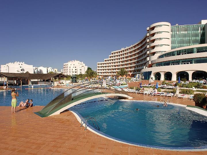 Dit attractieve luxehotel ligt centraal in het toeristische centrum van Albufeira. Naar het hoofdstrand is het ongeveer 1km en naar het plaatselijke centrum met talrijke winkel- en amusementsmogelijkheden zijn het slechts enkele minuten lopen. De dichtstbijzijnde golfbaan ligt op 3km. Verbinding met het openbaar vervoer vindt men 300m voor het hotel. Het hotel werd in 2001 geopend en beschikt op 8 etages over in totaal 414 appartementen. Het biedt zijn gasten een 2000m2 groot zwembad- en tuinlandschap, een stijlvolle ontvangsthal met 5 liften en loungebar, hotelkluizen, geldwisselkantoor en een 24-uursreceptie. Bovendien beschikt het over een speel- en tv-ruimte, kapper, kiosk, minimarkt, enkele winkels, discotheek, cafe, gezellige pianobar en een van airconditioning voorzien a la carte restaurants (kinderstoeltjes aanwezig). Zakenreizigers staan een conferentieruimte en een openbare internetverbinding ter beschikking. Als extra is er een medische dienst aanwezig. Het hotel biedt bovendien een parkeerplaats, en voor de kleintjes is er een miniclub en speelplaats. De modern en smaakvol ingerichte appartementen beschikken over een betegelde badkamer, woongedeelte, telefoon, sat-/kabel-tv, radio, kitchenette, koelkast, airconditioning, centrale verwarming en een kluis. In het buitenbereik bevinden zich een zoetwaterzwembad met kinderbad, snackbar, ligstoelen en parasols. Bovendien biedt het een binnenbad, fitnessstudio en een eigen kuurcentrum met bubbelbad, sauna, solarium, Turks stoombad en massages. Bovendien kan gebruik gemaakt worden van tennis, tafeltennis, basketbal, biljart/snooker, minigolf en golf. In het hoofdseizoen wordt dagelijks een afwisselingrijk animatieprogramma aangeboden. De gasten kunnen zowel hun ontbijt, lunch en avondeten aan een buffet zelf samenstellen. Lunch en avondeten kunnen bovendien als menu en het avondeten tevens a la carte gekozen worden. Er bestaat de mogelijkheid om half-, volpension of all-inclusive te boeken.