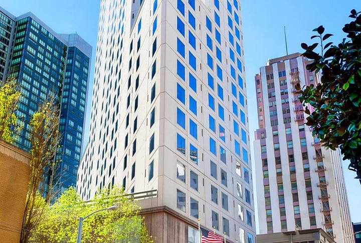Het hotel is gunstig gelegen in de levendige wijk South of Market, omringd door de belangrijkste winkelstraat van San Francisco, restaurants en bezienswaardigheden. Het is ongeveer 21 kilometer van San Francisco International Airport en ongeveer 32 kilometer van Oakland International Airport. Het van airconditioning voorziene stadshotel is 36 verdiepingen hoog en bevat 676 kamers en is een adembenemend alternatief voor de gewone luxe hotels in Downtown San Francisco, Californie. Of de gasten nu reizen voor zaken of voor plezier, de gunstige locatie in het centrum maakt het een plezier om alles te voet te doen en de perfecte manier om de stad te verkennen. De gasten kunnen genieten van een korte wandeling naar het Moscone Convention Centre en het financiele district, de tram nemen voor een korte, mooie rit naar China Town, Alcatraz of Fisherman’s Wharf. Voor koopjesjagers ligt het hotel op slechts twee huizenblokken van Union Square, met Giorgio Armani, Gucci, Tiffany&Co, Chanel, Christolfe, Neiman Marcus en Saks 5th Avenue. De gasten worden verwelkomd in de ontvangsthal met 24 uur per dag geopende receptie en uitcheckservice. Extra gemeenschappelijke ruimten zijn de bar, het restaurant en conferentiefaciliteiten. Roomservice wordt geboden en een wasservice en een parkeerplaats zijn tegen betaling ook beschikbaar voor de gasten. Alle kamers hebben een eigen badkamer met een douche, een bad en een haardroger en zijn voorzien van een Heavenly Bed’. Alle onlangs gerenoveerde kamers hebben een telefoon met telefoon, televisie met flatscreen, een radio en breedband internettoegang (tegen betaling) en beschikken allemaal over de mogelijkheid om koffie en thee te zetten met Starbucks koffie. Andere standaardvoorzieningen zijn een kluisje, een strijkijzer met strijkplank en een minibar. Optimaal comfort is verzekerd door de airconditioning en verwarming.