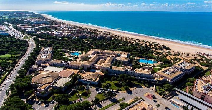 Dit charmante strandhotel ligt mooi tussen het groen, direct aan het prachtige duinen-zandstrand Playa de la Barrosa. Op ongeveer 1 kilometer afstand vindt u vele winkel- en amusementsmogelijkheden. Naar Chiclana is het ongeveer 7 kilometer. Het openbaar vervoer stopt direct voor het hotel. De transfer naar de luchthaven van Jerez de la Frontera duurt ongeveer 45 minuten. Het aantrekkelijke hotel heeft op 3 verdiepingen in totaal 549 kamers, waarvan 74 eenpersoonskamers, 389 tweepersoonskamers en 86 suites. Het hotel biedt zijn gasten een ruime ontvangsthal met lift, een 24 uur per dag geopende receptie, hotelkluis, wisselkantoor, speelkamer, televisielounge en een conferentieruimte met openbare internetterminal. Verder beschikt het over een gezellig cafe, een bar, een kiosk, minimarkt en 2 van airconditioning voorziene restaurants met kinderstoelen voor de kleine gasten. Als extra dienstverlening biedt het hotel roomservice, wasservice en een medische dienst. Buiten het hotel vindt u een speelplaats met miniclub en zijn er parkeermogelijkheden.De kamers zijn comfortabel ingericht en beschikken over een eigen badkamer met douche en haardroger. Verder zijn ze voorzien van telefoon, satelliet/kabeltelevisie, radio, stereo-installatie, internetaansluiting, minibar, airconditioning, centrale verwarming en een balkon of terras. De superior kamers hebben geen tweepersoonsbedden. In het groene buitengedeelte bevinden zich een zwembad, ligstoelen en parasols. Het hotel biedt zijn gasten verder een overdekt zwembad, tafeltennis, tennis, fitnessstudio, paardrijden, biljart/snooker en een afwisselend seizoensafhankelijk animatieprogramma. Tegen betaling kunnen de gasten gebruik maken van het grote wellnesscentrum op twee niveaus met beautyfarm en Spa-centrum, met o.a. sauna, solarium en massageaanbod. Aan het strand staan ligstoelen en parasols ter beschikking. De dichtstbijzijnde golfbaan ligt ca. 500 m van het hotel. Het hotel biedt Nordic Walking en wandelingen aan.