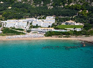 Dit hotel ligt boven een schitterend bijgehouden, wit kiezelstrand. Het biedt een spectaculair uitzicht op het kristalheldere water van de zee en de zonnige eilanden van de Baai...