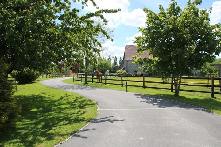 5 minuten vanaf afrit 15 van de snelweg A13. Rustige en veilige locatie, midden op ons eigen paardenterrein. Omringd door grasland voor onze sportpaarden die u zowel buiten, overdag in de paddocks als ’s avonds in de box kunt bewonderen. Je zult kalm zijn omdat we geïsoleerd zijn en onze paardensportactiviteiten strikt privé zijn. Op 5 minuten afstand kunt u direct bij ons wandelen in het bos, over paden, door velden. Op 15 minuten afstand heb je Giverny, wereldwijd bekend om zijn impressionistische schilders, of opmerkelijke dorpen zoals La Roche Guyon. Op 25 minuten afstand kunt u de dierentuin Thoiry bezoeken.