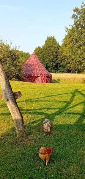 Het is een bijzonder rustgevende plek van 7 ha met groenteteelt op 2 ha Er zijn veel bomen, een zwembad en een prive sauna die je apart kan huren. Het nadeel is dat we vliegverkeer hebben in heel de regio ondanks dat we ver van bxl af zitten. Het blijft een ^prachtige plek om te chillen.