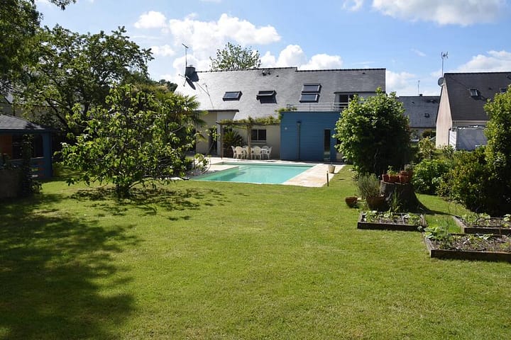 Kom uw tent opzetten in de schaduw van de eikenbomen, bij ons zwembad, in het stadje Saint Etienne de Montluc, op 21 km van het centrum van Nantes. Te voet bereikt u het dorp met zijn winkels (kruidenierswinkels, bars, restaurants, tabakswinkel, supermarkt, enz.), het treinstation (Nantes Le Croisic-lijn) en de GR3 (langeafstandswandelroute). Het moeras van Audubon en zijn vogels (reigers, ooievaars, enz.) liggen op een paar kilometer afstand. Het strand van La Baule ligt op 45 minuten rijden. Ons pand ligt aan de rand van de stad, in een doodlopende straat (weinig verkeer). Wij bieden u de achtertuin aan, tussen het zwembad en de vijver. De voorgestelde locatie is circa 16 bij 10 meter. Ter informatie: het huis wordt bewaakt door bewakingscamera’s aan de buitenkant.