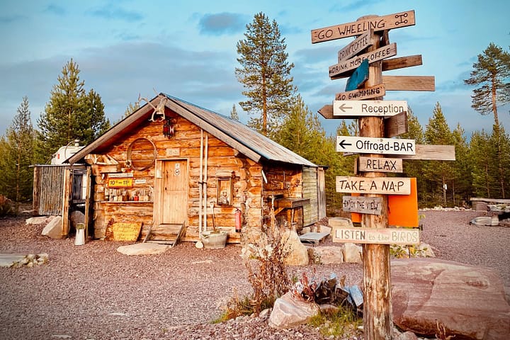 Een echte offroad-camping. Alles is ingericht met een offroad-toets. Voor iedereen, ook gasten zonder offroad-voertuig, is er een speciale plaats. Bezoek zeker het restaurant, misschien wel het kleinste van Dalarna, waar ze onder andere beerburgers serveren. De camping verhuurt ook een typische Zweedse hottub en packraft-boten, opblaasbare eenpersoonsboten.