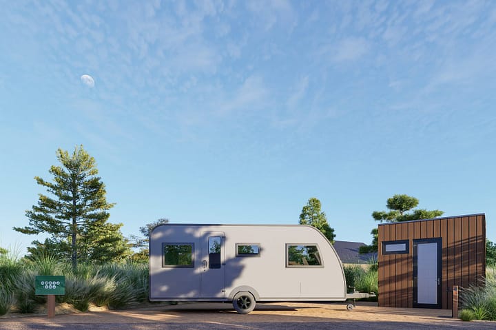 • Plaatsing van voortent of luifel (niet beide) toegelaten