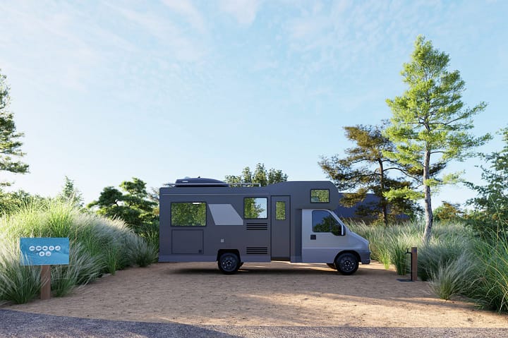 • Plaatsing van voortent of luifel (niet beide) toegelaten