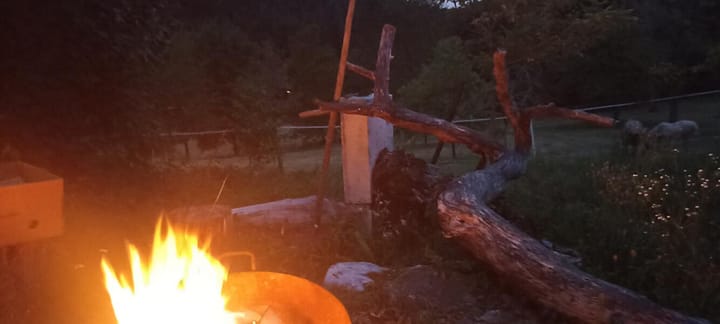 Wij zijn heel vertrouwd en houden van de rust aan de rand van het bos. Drinkwater, Warm water, Keuken, Vuurschaal, Brandhout beschikbaar, Zwemvijver of rivier, Trampoline, Toilet, Warme douche, Koude douche, Elektriciteit, Telefoon oplaadpunt, Huisdieren toegestaan, Overdekte keuken, Speelplaats voor kinderen, Dieren op het terrein, Parkeren op het terrein, Uitzicht op de velden, Uitzicht op de heuvels, Uitzicht op de bergen, Uitzicht op het bos, Uitzicht op zonsopgang, Uitzicht op zonsondergang, Buiten zitgedeelte, Binnen zitgedeelte, Afvalverwerking, Mobiele ontvangst, Barrièrevrije toegang tot de kampeerplaats, Paarden toegestaan, Stallen/Paardenweide