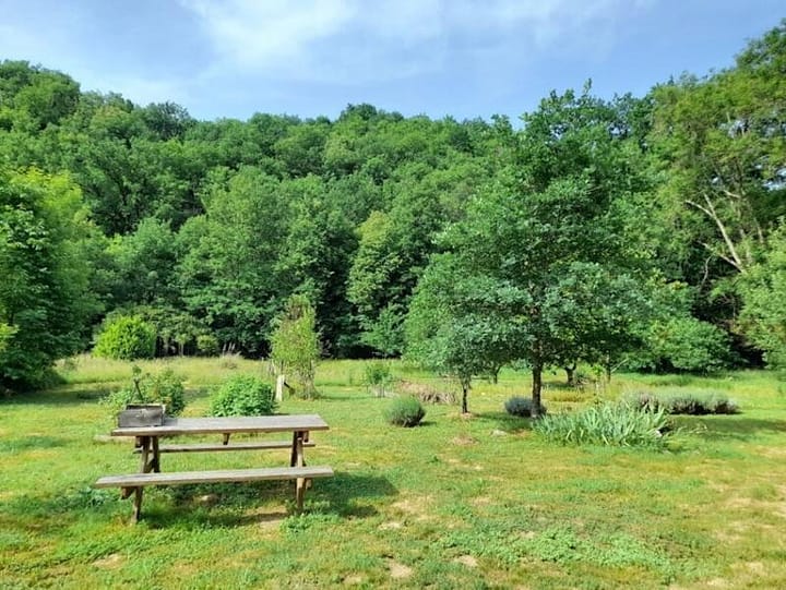 Kom uw batterijen opladen in een kleine oase van rust, een relatief grote ruimte, ideaal voor een rustig uitje. Geniet van een groene ruimte met een picknicktafel waar u buiten kunt eten en een schaduwrijke ontspanningsruimte voor ontspannende momenten. Deze plek is afgezonderd van andere woningen, waardoor u de mogelijkheid heeft om weer in contact te komen met de essentie, terwijl u toch dicht bij alle activiteiten in de omgeving bent. (vissen, zwemmen, peddelen, kanoën) Of u nu op zoek bent naar rust en stilte of naar buitenactiviteiten, dit kleine stukje paradijs is de ideale plek voor uw volgende verblijf onder de sterren. Huisdieren toegestaan