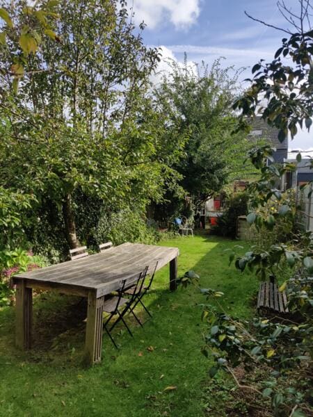 Zet je tent in mijn rustige, ruime en zonnige stadstuin, de perfecte uitvalsbasis voor zowel natuur als stad.