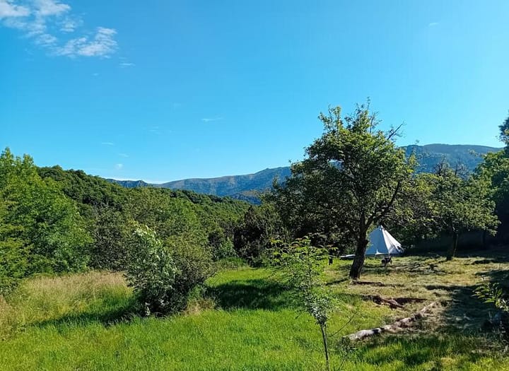Appelboomgaard in een gehucht op een heuveltop in het regionale natuurpark Monts d’Ardèche. Uitgerust met een klein chalet met sanitair, toilet, douche en kitchenette. Talrijke wandelpaden leiden u door deze ongerepte streek. ’s Nachts kunt u genieten van een adembenemend uitzicht op de sterren, zonder lichtvervuiling. Drinkwater, Vuurkorf, Toilet, Koude douche, Telefoon oplaadpunt, Huisdieren toegestaan, Parkeren op het terrein, Uitzicht op het bos