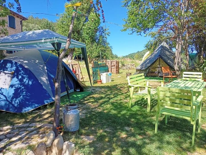 Trek de stekker eruit. We bevinden ons in een klein dorpje midden in de heuvels. Als u geluk heeft, kunt u een van de vele evenementen bijwonen die wij in de zomer organiseren. Het dorp Guiglia is te voet via een pad te bereiken. Op minder dan 1 km afstand verwelkomen onze vrienden van Birrificio White Dog u graag en last but not least liggen de prachtige Sassi di Rocca Malatina op minder dan 5 km afstand. We hebben een paar tenten in een prachtige gastvrije tuin met water en elektriciteit. Drinkwater, Warm water, Toilet, Warme douche, Elektriciteit, RV elektriciteit