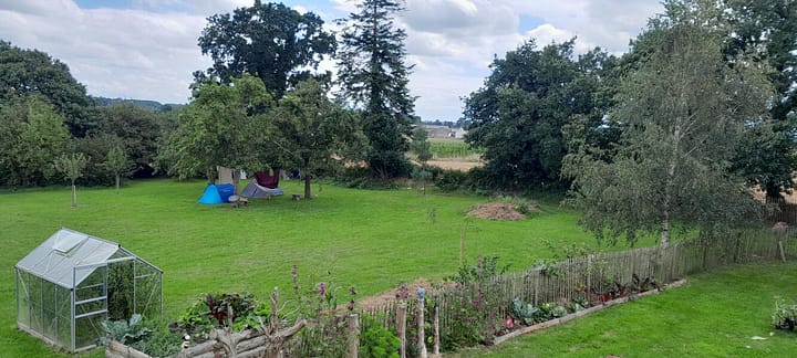 Ik woon vlak bij Mont Saint Michel en heb een prachtig stenen huis. Ik bied aan om tenten te plaatsen in mijn grote, zeer rustige tuin. Ik heb een droogtoilet en een zonnedouche gemaakt. Er zijn veel rustplekken beschikbaar. BBQ, Drinkwater, Warm water, Eettafel, Vuurkorf, Hangmat, Sfeerverlichting, Toilet, Warme douche, Elektriciteit, Telefoon oplaadpunt, Huisdieren toegestaan, Parkeren op het terrein, Uitzicht op de velden, Uitzicht op zonsopgang, Uitzicht op zonsondergang, Buiten zitgedeelte, Picknicktafel, Afvalverwerking, Fietsenstalling