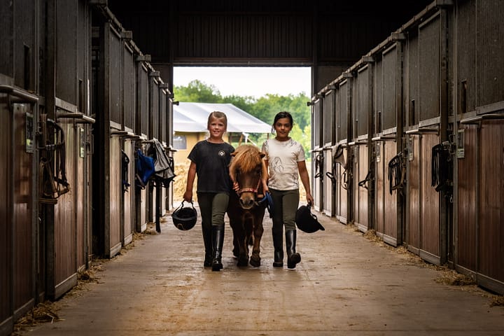 We nodigen je graag uit op de paardenboerderij van boer Gert Jan en zijn kinderen. Op deze mooie plek, middenin het groen en op steenworp afstand van Enschede, draait het hoofdzakelijk om de 70(!) paarden en pony’s die hier wonen. Op deze 5 sterren FNRS manege komen zowel beginners als gevorderde ruiters aan hun trekken. Meerijden in een dressuur- of springles, een eigen privéles onder begeleiding van een gediplomeerde instructeur, wandelen door het bos met één van de lieve wandelpony’s, spelletjes doen met de pony’s en ze natuurlijk meehelpen verzorgen en uitgebreid vertroetelen. De hoofdrol is voor shetlander Mex. Dagelijks komt hij een rondje doen op het tentenveld en laat zich graag knuffelen en borstelen.