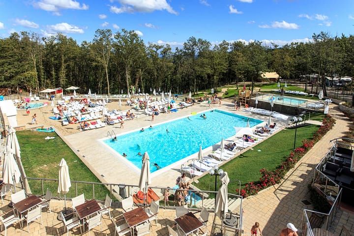 De camping is gelegen in het hart van de Chianti-streek, in een bosachtige omgeving en maakt deel uit van een natuurpark. Een prachtig wandelgebied. Nieuw zwembad met lagune, apero-terras en restaurant, mooi aangelegde plaatsen, nieuw sanitair. Kinderanimatie. Bij reservering afmetingen melden a.u.b.