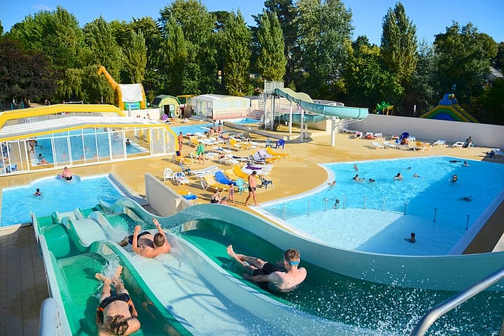 Mooie familiale camping in groene omgeving met afgebakende plaatsen. 200m van zee met wit zandstrand en 1 km van jachthaven. Camping in groene omgeving met afgebakende plaatsen. Speciale voorzieningen voor kampeerauto’s. Waterparadijs met grote verwarmde zwembaden open of gesloten afhankelijk van het weer. Waterglijbaan peuterbad en wirlpool. Animatie voor kinderen en volwassenen in juli en augustus. Tochten te voet en per fiets mogelijk. Op 500m andere stranden, casino, cinema, en spa-mogelijkheden.