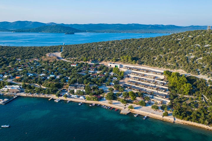 Terrassen camping met overwegend schaduwrijke plaatsen van olijfbomen en overal zicht op een mooie baai. Bar en restaurantje met prachtig uitzicht op zee en strand. Mooie plaatsen met alle faciliteiten. Nieuw zwembad en peuterbad. Tisno op wandel- of fietsafstand. Het pittoreske schiereiland Murter met zijn vele strandjes en kleine dorpjes ligt vlakbij.