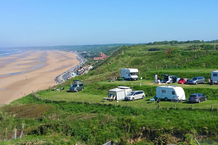Grote, aan zee (200m) gelegen camping op de plaats van de landing door de Amerikaanse troepen op 6 juni 1944. Afgebakende plaatsen met stroom maar zonder schaduw. Overdekt zwembad open 1/5 – 30/9.