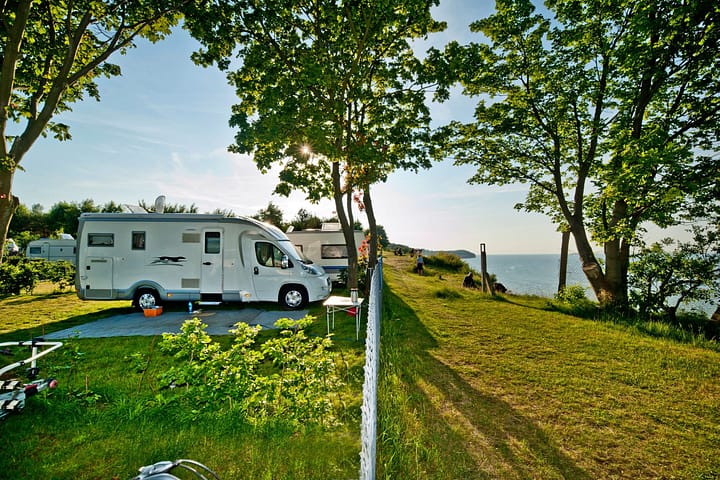Mooie rustige camping gelegen aan zee, te bereiken via trappen.