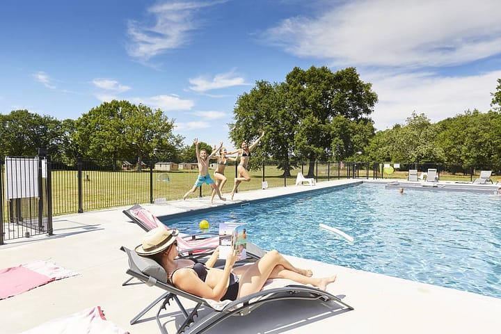 Autovrije camping met een paar authentieke gebouwen uit het boerderijverleden met ruime plaatsen op gras, die op een natuurlijke wijze door sierstruiken worden verdeeld. Het strak vormgegeven zwembad is verwarmd. Ontspannen kan o.a. in de driehoekige hangmat op de grote zonneweide. Kinderen ravotten in de buistunnels, die naast en tussen de schommels en glijbanen liggen. In het bosgedeelte vind je een lange tokkelbaan en daar zijn ook ponyritten mogelijk. Niet voor tandemassers/>3,5 ton/>8 m.