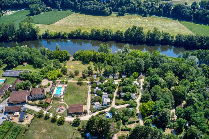 Deze camping, op 50 m van de Dordogne, heeft staanplaatsen op een min of meer open veld en staanplaatsen onder bomen. De staanplaatsen worden gescheiden door struiken en in het bos door bomen. De huuraccommodaties liggen gegroepeerd op de camping. Langs de Dordogne, op het kiezelstrand kunnen de kinderen spelen en men kan er pootjebaden. Er kan ook worden gevaren met een kajak of kano. Er is ook gras waarop men kan zonnebaden.
