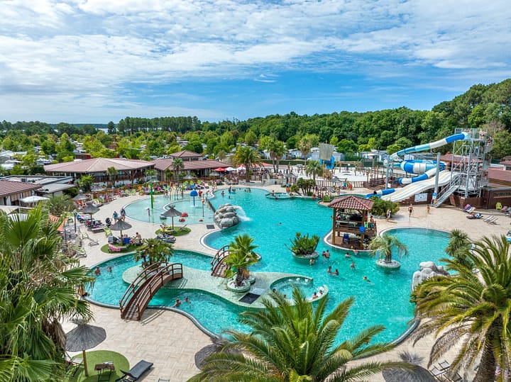 Camping bij het meer van Biscarrosse, met strand, vlak bij de Atlantische Oceaan. Er zijn zowel staanplaatsen als huuraccommodaties. De camping beschikt over een groot zwemparadijs, met een speels ingericht kleuterbad en aangrenzend een waterspeeltuin. Verder een restaurant, snackbar met afhaalmaaltijden, wellnessvoorzieningen en winkel. Bijna de gehele dag wordt animatie geboden. Op de plaatsen is genoeg privacy, zeker in het bosgedeelte. Aan het meer kan je ook genieten op de waterfietsen.