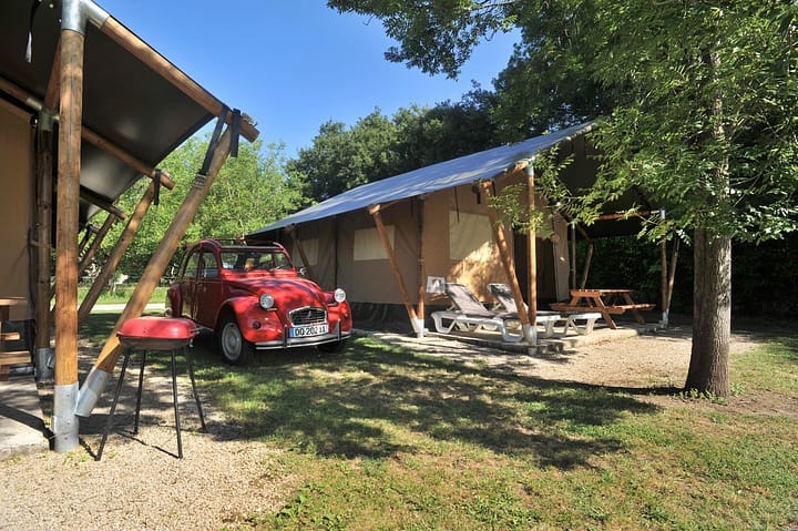 Een kindvriendelijke camping aan de oever van de rivier de Dordogne; tussen Souillac en Rocamadour. De camping biedt naast kampeerplaatsen ook huuraccommodaties, zoals ingerichte tenten, huisjes en gîtes. Er zijn twee openluchtzwembaden met peuterbadjes, sportvelden, een gezamenlijke ontmoetingsruimte en verkoop van streekproducten. Je kunt er kanoën, wandelen en fietsen, maar is ook een ideale uitvalsbasis voor een bezoek aan de bezienswaardige stadjes op minder dan 20 km afstand.