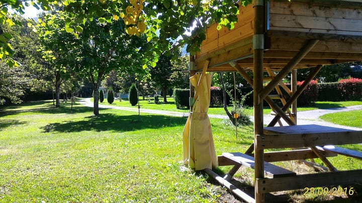 De camping wordt door bergen omgeven en ligt langs de fraaie, snelstromende La Neste, aan de voet van de Pyreneeën. Op het langgerekte terrein bepalen de stacaravans het beeld; de toeristische staanplaatsen liggen ertussen. Sommige staanplaatsen zijn van elkaar gescheiden door hoge hagen, andere door enkele hoge bomen en struiken. Er is een snackbar en een eenvoudig restaurant in de zomer. Er is een eenvoudig zwembad met apart kleuterbad.