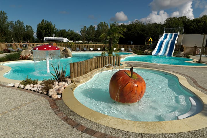 Camping du Vieux Verger ligt op 800 m van de zee. De camping bestaat uit twee delen, 75 m van elkaar, ieder met een speeltuintje en sanitair. De 3de generatie eigenaar heeft ook een hoveniersbedrijf en dat zie je. Het terrein is als een biljartlaken: glad en vlak. Er zijn veel bloeiende planten en de hagen zijn op de millimeter nauwkeurig getrimd. Alles ziet er daardoor verzorgd uit. Het fantasievol aangelegde zwembad is verwarmd. Er is gratis wifi op de hele camping.