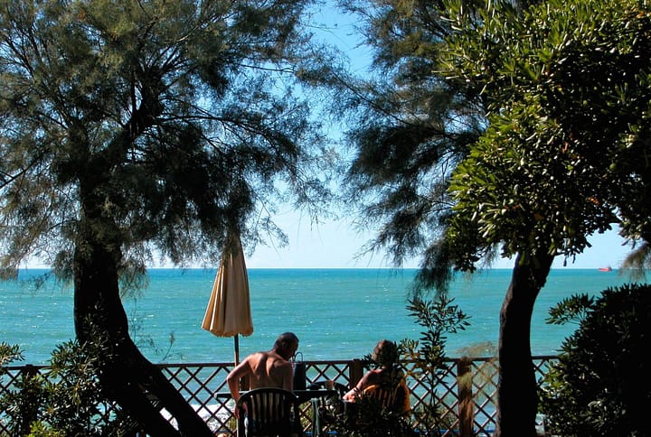 De camping ligt tussen een weg/spoorlijn en de zee. Plaatsen aan zee hebben een terras met parasol, stoelen, ligbedden en een panoramisch uitzicht. De camping is voornamelijk geschikt voor tenten. Er is een smal kiezel- en rotsstrand met ligstoelen en parasols en betonnen plateaus, bereikbaar via een trap. Hogerop is een houten vlonder. Het kleuterbad bij het zwembad met zeewater is 50 cm diep. Campers met een lengte vanaf 8 m zijn verboden. De camping ligt tussen een weg/spoorlijn en de zee. Plaatsen aan zee hebben een terras met parasol, stoelen, ligbedden en een panoramisch uitzicht. De camping is voornamelijk geschikt voor tenten. Er is een smal kiezel- en rotsstrand met ligstoelen en parasols en betonnen plateaus, bereikbaar via een trap. Hogerop is een houten vlonder. Het kleuterbad bij het zwembad met zeewater is 50 cm diep. Campers met een lengte vanaf 8 m zijn verboden.