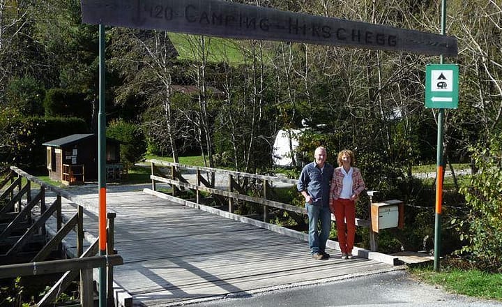 De langgerekte natuurcamping ligt aan de rand van Hirschegg op een hoogte van 900 m. De toeristische plaatsen liggen rond een open veld, omringd door loof- en naaldbomen en afgescheiden van de vaste staanplaatsen. De staanplaatsen op gras zijn deels afgebakend met heggen. Langs de camping stroomt een riviertje en de flora en fauna maken de natuurlijke omgeving compleet. Ontbijtservice is mogelijk. Er is een klein zwemmeertje, voor de helft omringd met een open strook gras en enkele bankjes.