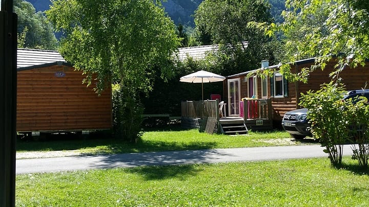 Het rechthoekige, vlakke terrein biedt uitzicht op de bergen. De staanplaatsen zijn afgebakend door loof- en naaldbomen en hoge heggen of houten hekken. Achter op het terrein ligt een deel voor tentkampeerders. Op 250 m afstand ligt het gemeentelijk zwembad, dat gratis toegankelijk is voor de kampeerders. Honden zijn toegestaan. De camping ligt bij de Alpe-d'Huez. Tennis is buiten het terrein tegen betaling mogelijk. Het rechthoekige, vlakke terrein biedt uitzicht op de bergen. De staanplaatsen zijn afgebakend door loof- en naaldbomen en hoge heggen of houten hekken. Achter op het terrein ligt een deel voor tentkampeerders. Op 250 m afstand ligt het gemeentelijk zwembad, dat gratis toegankelijk is voor de kampeerders. Honden zijn toegestaan. De camping ligt bij de Alpe-d'Huez. Tennis is buiten het terrein tegen betaling mogelijk.