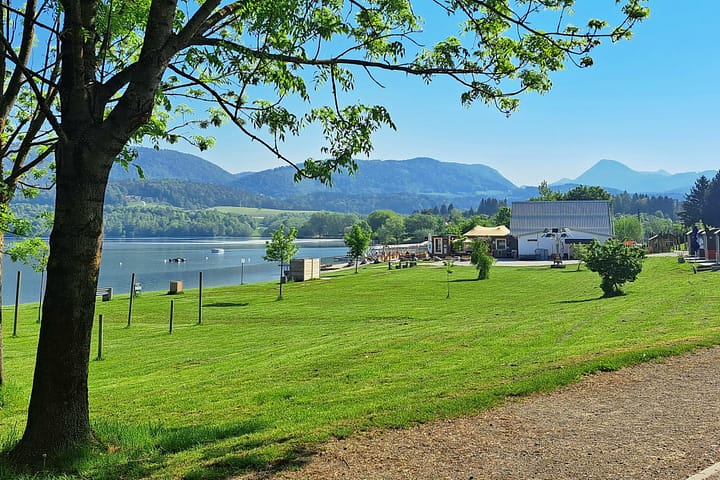 Op deze camping zijn veel staanplaatsen met zicht op het meer van Velenje. Het diepe meer staat bekend om zijn heldere water. Er is een grote ligweide en een waterglijbaan. Verder vind je hier een restaurant met terras, eveneens met zicht op het meer. Naast de camping zijn voetbalvelden, tennisbanen een golfclub en een festivalterrein. Supboards, kajaks, surfplanken en fietsen zijn op de camping te huur. Ook kun je vanuit de camping gaan raften. Er is een trapveldje.