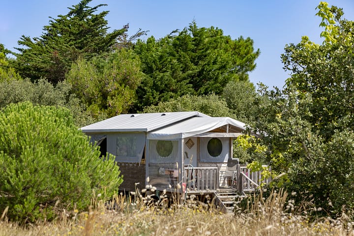 Een brug verbindt het eiland Île de Noirmoutier met het vasteland. Op het eiland ligt deze rustige camping. Het terrein ligt in de duinen bij het strand en de jachthaven van l'Épine. De staanplaatsen zijn in de duinpannen en op de duintoppen. Veel staanplaatsen hebben een zanderige ondergrond. Een aantal heeft schaduw en een ander deel uitzicht over de oceaan. Er zijn trekkershutten te huur. Een kort pad over een duin leidt naar het schone en grote strand. Bij de jachthaven zijn faciliteiten.