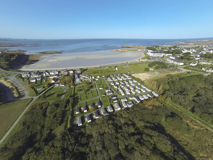 Het vlakke, rechthoekige terrein ligt aan de boulevard. De staanplaatsen zijn groepsgewijs afgebakend door heggen en struiken en liggen voornamelijk achter de receptie, gescheiden van de stacaravans. Er is een zwembad met schuifkap. Het brede zandstrand van 600 m lengte en de camping worden gescheiden door de boulevard (D38). De afstand vanaf de camping tot het strand is slechts ca. 50 m.