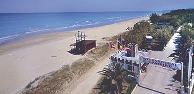 Deze langwerpige camping ligt direct aan zee en bevindt zich tussen een spoorlijn en het strand. De staanplaatsen liggen in groepjes, onder loofbomen. De grootte varieert nogal. Voor de wat kleinere staanplaatsen zijn er aparte parkeerplaatsen. Er is een multisportterrein waar basketbal en (beach)volleybal gespeeld kan worden. Tenslotte is er een groot fijnkorrelig zandstrand van ca. 300 m lang en 40 m breed. Daar staan volop strandstoelen en parasols.