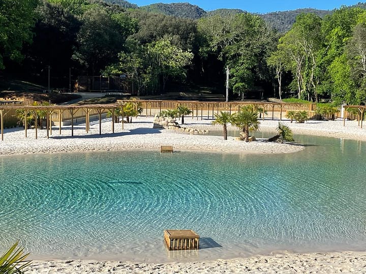 In een glooiende omgeving en in een bos gelegen familiecamping. De toeristische staanplaatsen vind je op meerdere locaties. Je hebt de keuze uit een plaats op een vlak terrein, met hagen als afscheiding of zoek je het hogerop, waar meerdere plaatsen op terrassen, veelal apart van elkaar, liggen, met veel privacy, Je staat in een bos, dus schaduw is geregeld. Zwemmen kan je in het openluchtzwembad. Zoek je meer iets in tropische sfeer, dan is er een lagune-bad, compleet met wit zandstrand.