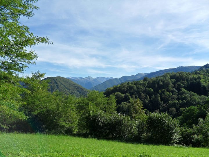 De toeristische staanplaatsen liggen verspreid over het terrein, deels tussen de vaste plaatsen en de verhuuraccommodaties. De plaatsen zijn afgebakend en van elkaar gescheiden door hoge hagen. Over het gehele terrein staan veel hoge loofbomen. Het zwembad heeft rondom een terras met ligstoelen en parasols maar er is geen schaduw. Vanaf het zwembad heb je een mooi uitzicht op Pyreneeën.