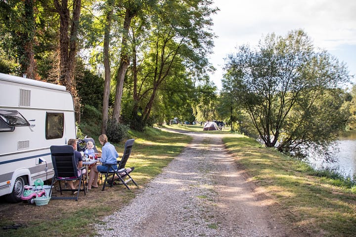 De langgerekte camping ligt aan de rand van de stad Colmar, aan de rivier de l'Ill. De weg is hoorbaar. De staanplaatsen bevinden zich deels op twee vlakke terrassen, deels naast het restaurant. Voor tenten is er een grote, vlakke kampeerweide aan de rivier. Bij de receptie zijn gecombineerde tickets voor de bus naar en de entree voor Base Nautique verkrijgbaar. Naast het restaurant bevindt zich een overdekte ruimte en zijn er e-bikes te huur.