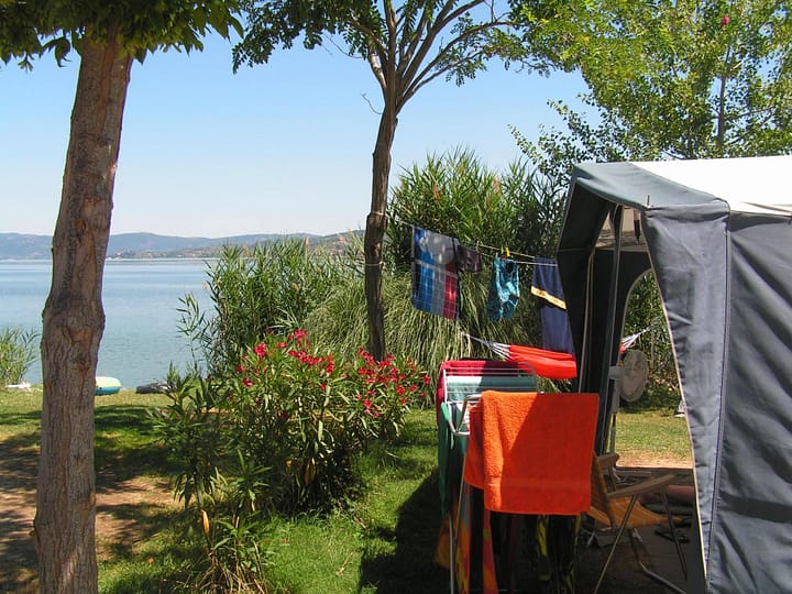 Deze grote camping ligt direct aan het Lago Trasimeno. Het eigen strand heeft een ligweide met ligstoelen. De staanplaatsen, waarvan een deel met eigen afwastafel, hebben voldoende beschutting. De bar en het restaurant, de winkel, het multisportterrein en het ruime zwembad met diverse glijbanen liggen centraal op het autovrije terrein. Er wordt overdekt geparkeerd bij de entree. Deze grote camping ligt direct aan het Lago Trasimeno. Het eigen strand heeft een ligweide met ligstoelen. De staanplaatsen, waarvan een deel met eigen afwastafel, hebben voldoende beschutting. De bar en het restaurant, de winkel, het multisportterrein en het ruime zwembad met diverse glijbanen liggen centraal op het autovrije terrein. Er wordt overdekt geparkeerd bij de entree.